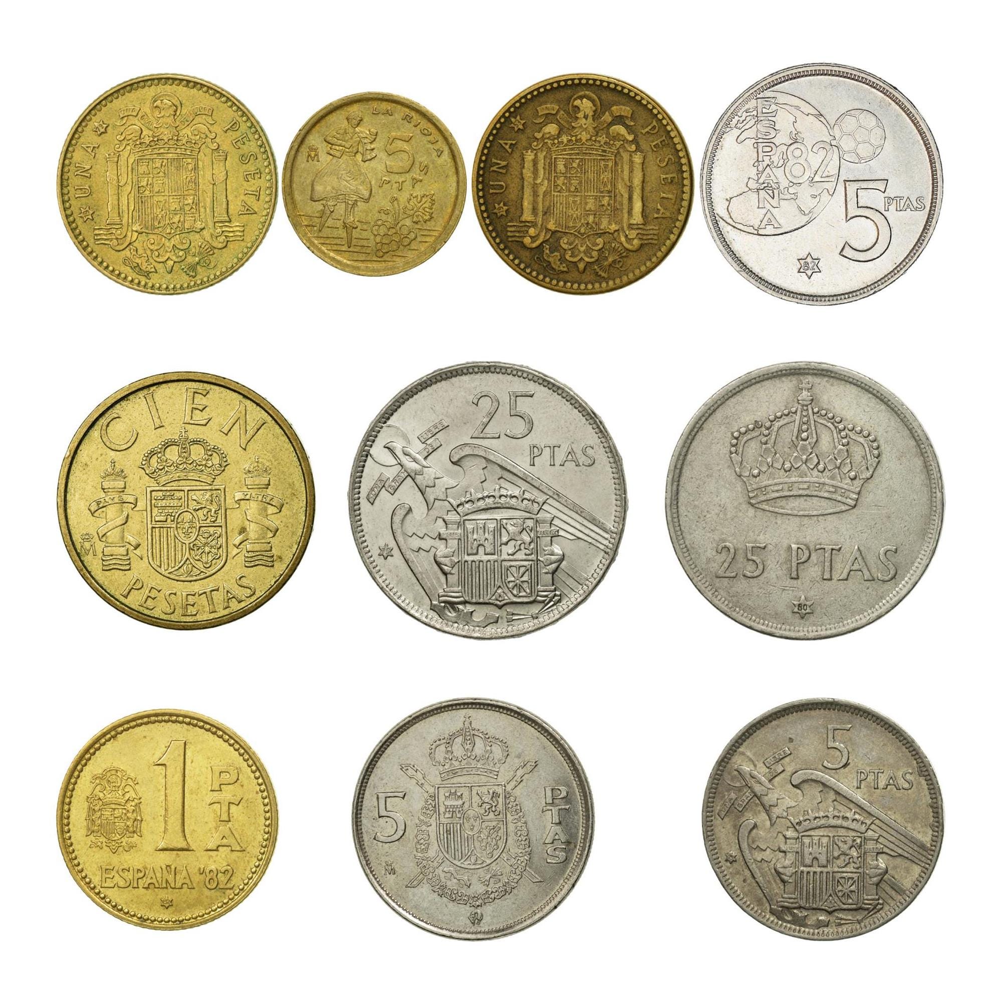 10 coin set made in Spain (Kingdom of Spain ), Reino de España. Spanish coins picked from these periods: Peseta (1946 - 1996).