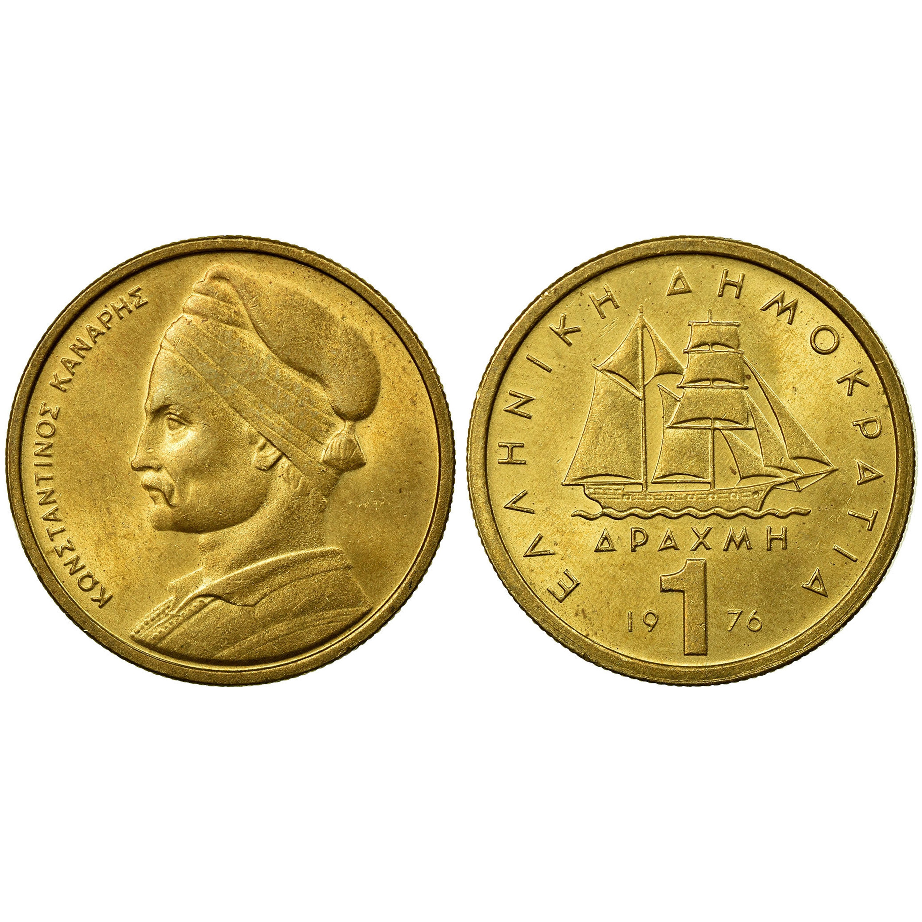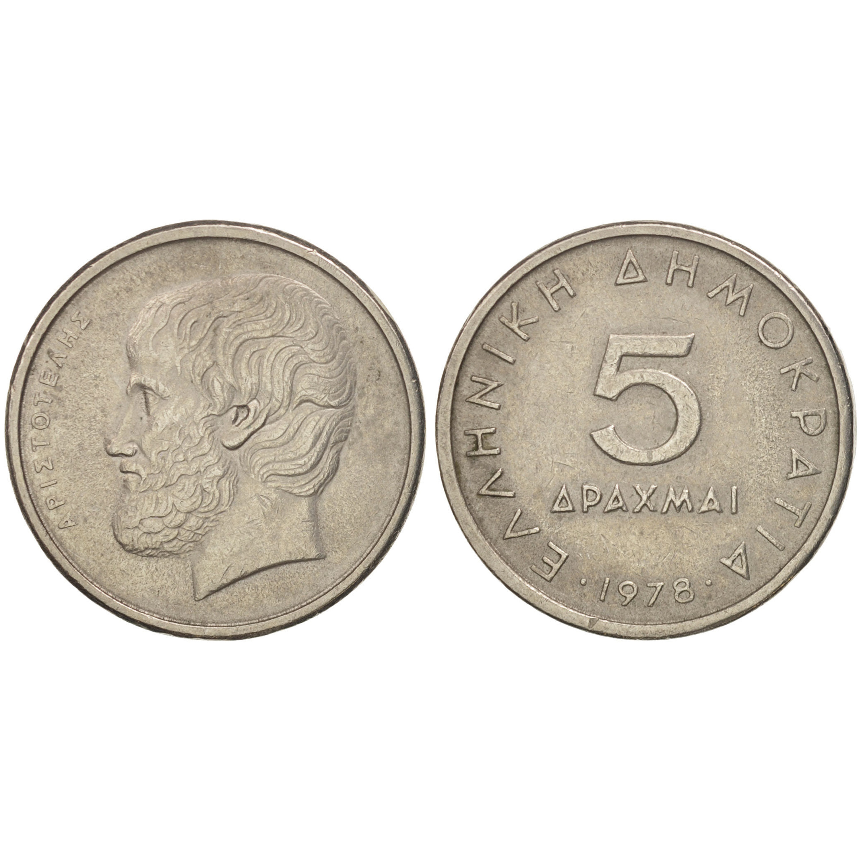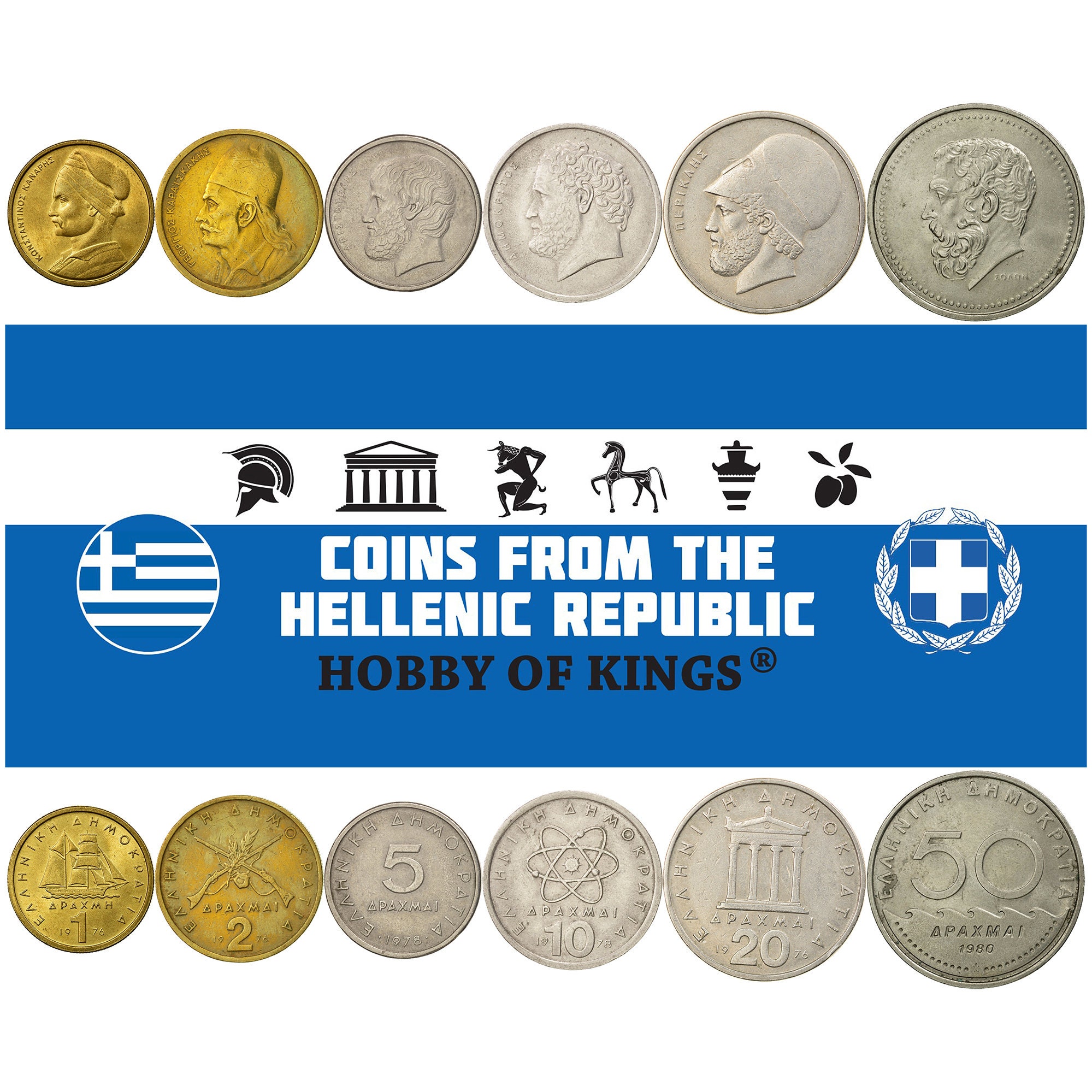 Greek 6 Coin Set 1 2 5 10 20 50 Drachmai | Constantine Kanaris | Aristotle | Democritus | Pericles | Corvette | Atom | Greece | 1976 - 1980