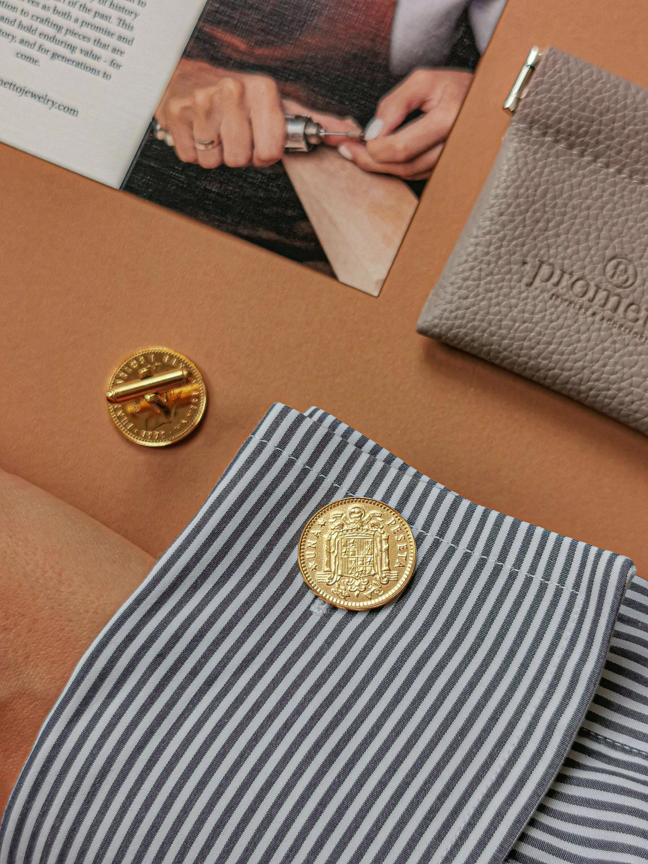 ✨ Unique gold plated Cufflinks with Genuine Spanish 1 Peseta Coins: A Touch of Solid Elegance ✨