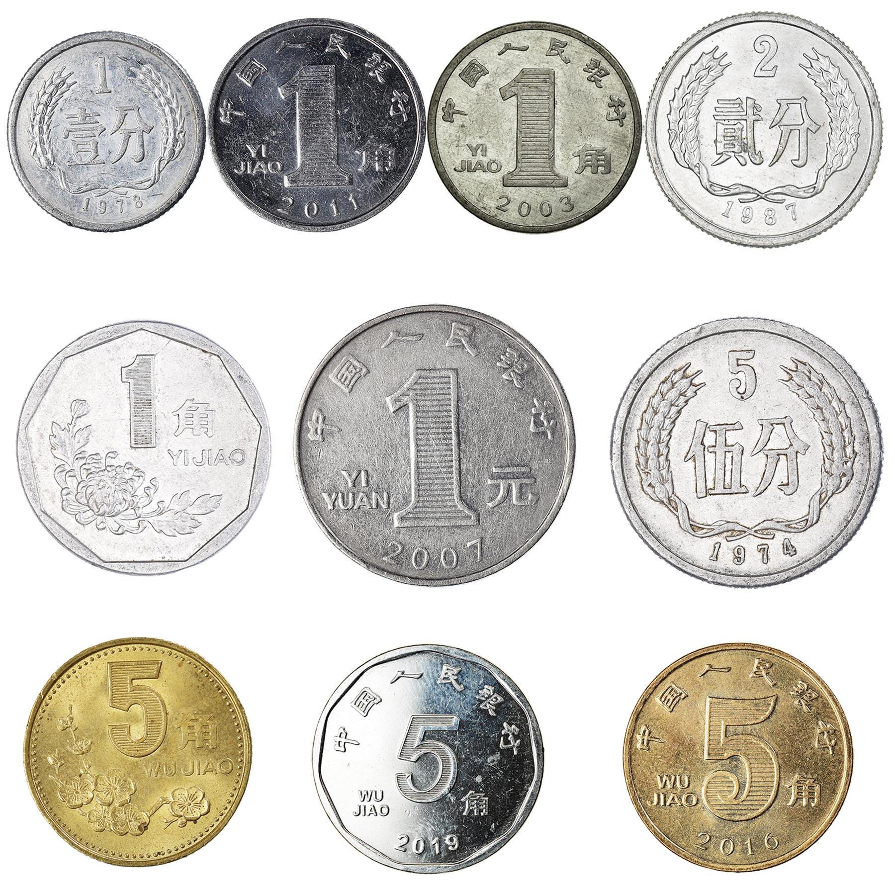 10 DIFFERENT COINS FROM THE PEOPLE'S REPUBLIC OF CHINA. Collectible coins were picked randomly from the numismatic periods: Yuan Renminbi (1955-date). Each bag may have different combinations of coins and various dates. 100% you will receive Chinese coins from 1 fen to 1 yuan.