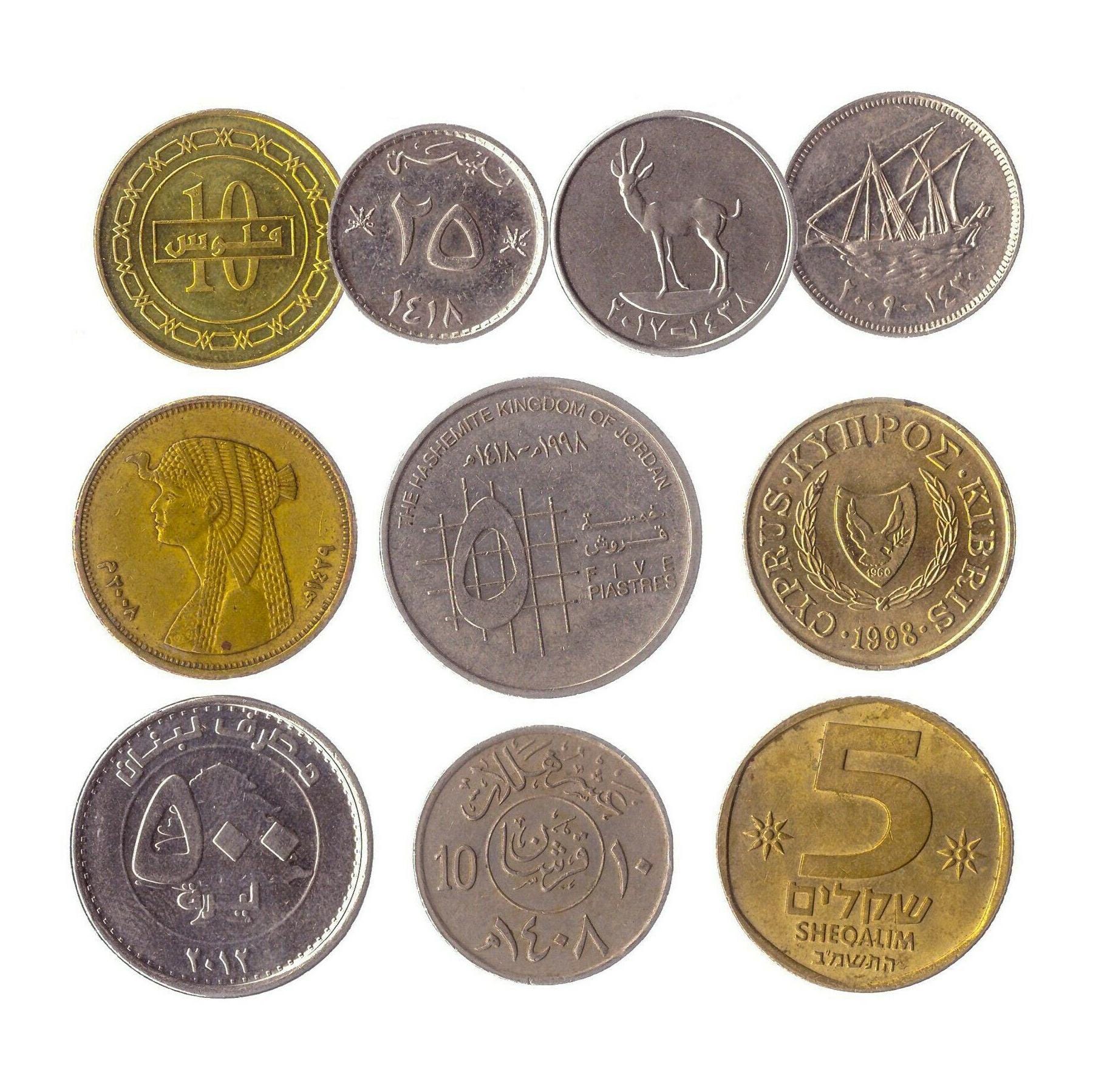 10 DIFFERENT COINS PICKED RANDOMLY FROM THE COUNTRIES IN THE MIDDLE EAST. MOST RECENT COUNTRIES: BAHRAIN, CYPRUS, EGYPT, ISRAEL, JORDAN, KUWAIT, LEBANON, OMAN, SAUDI ARABIA, UNITED ARAB EMIRATES, AND TURKEY. You will receive randomly picked circulated coins, only small denominations (Fils, Piastres, Milliemes, Halalas, Dirham, Cents, Mils, Baisa, Liveres, Qirsh, Agorot, Sheqel, Rials, Kurus).