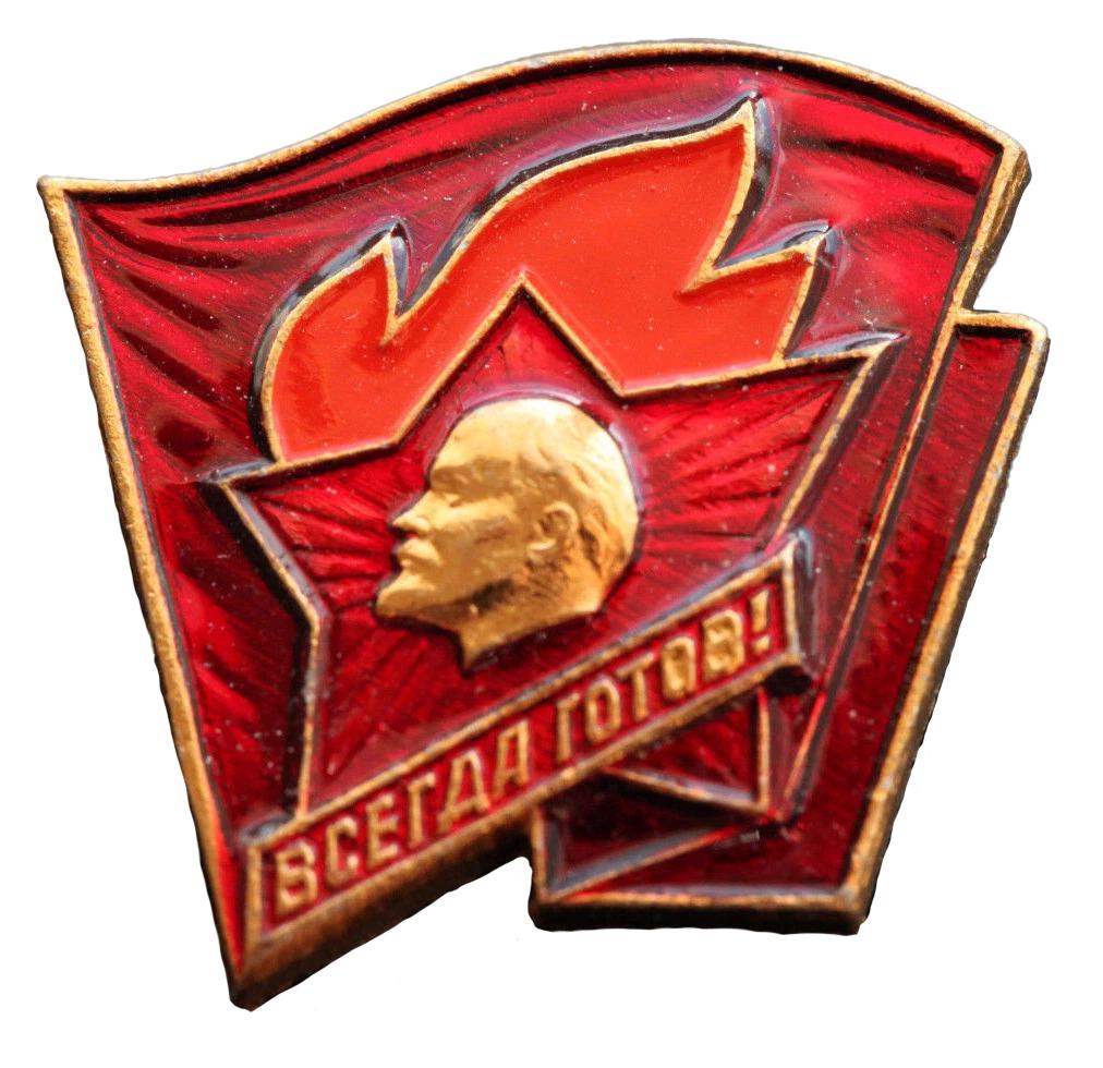 Senior Pioneer Badge of the USSR. Introduced for pioneers of 13 years of age as a stepping stone to joining the Komsomol. Not individually awarded. It was handed over to the pioneers of the "Squad of Senior Pioneers". Introduced in 1982.