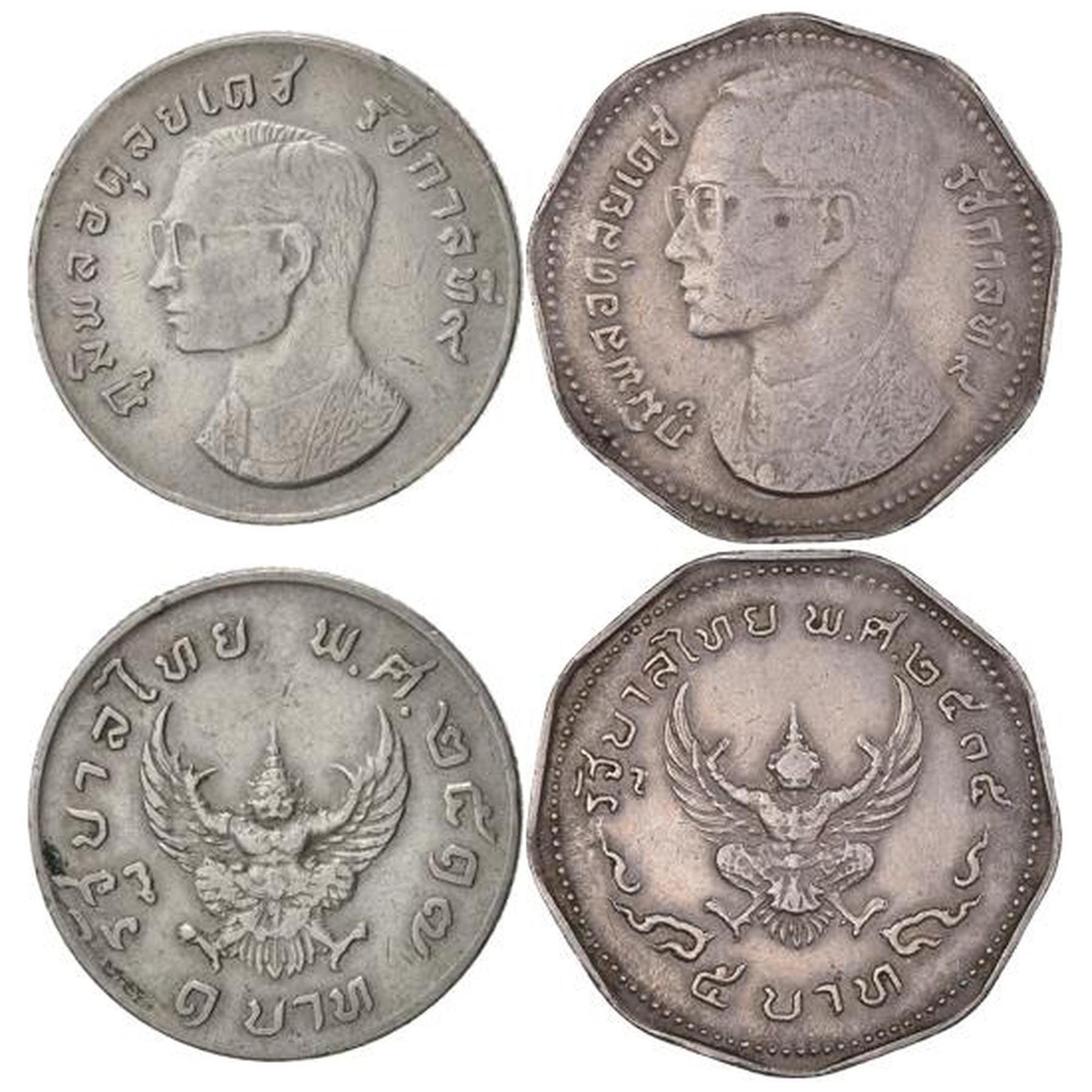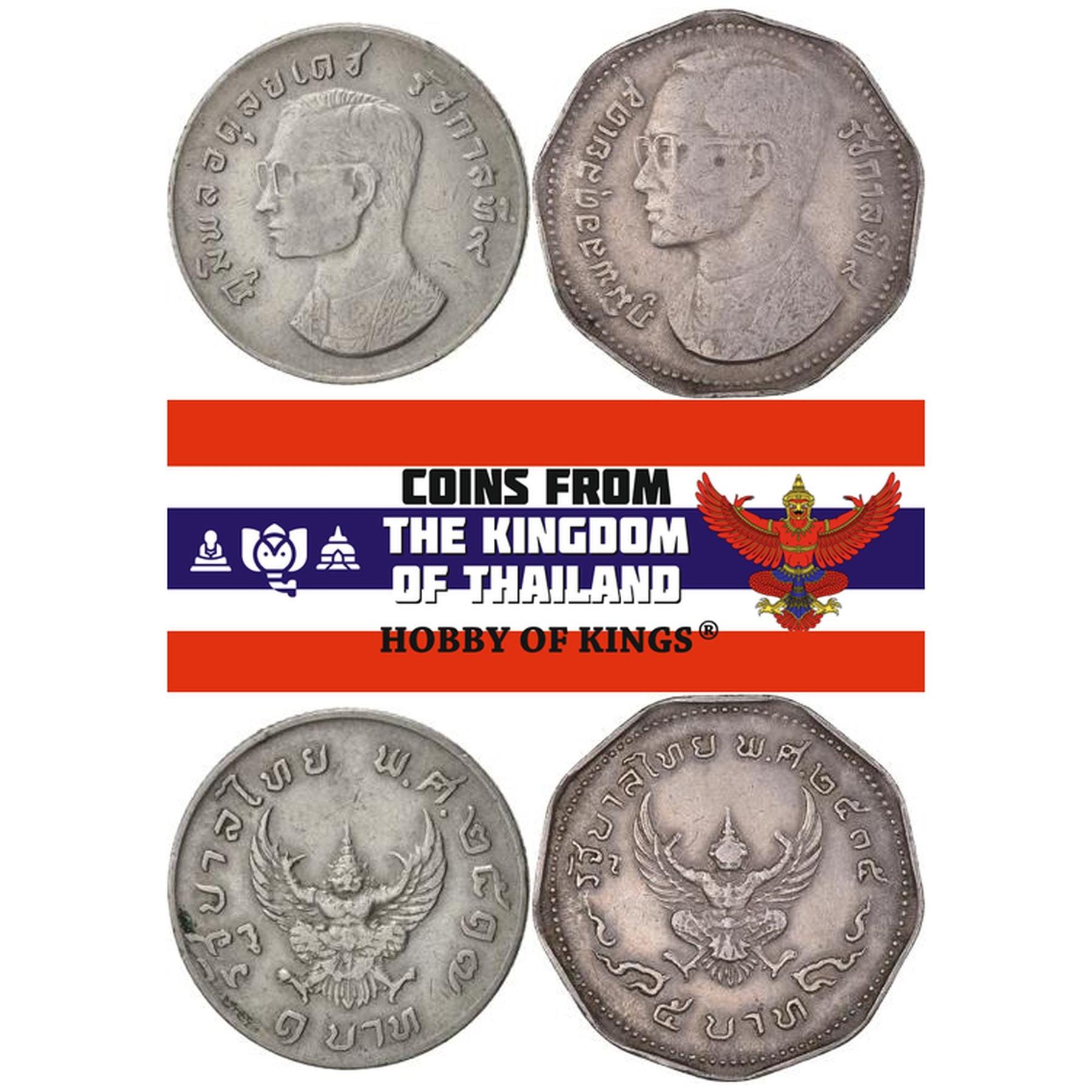 A set of 2 coins from Thailand (ราชอาณาจักรไทย, Ratcha-anachak). Different Thai coins picked from these periods: Baht (1972 - 1974).