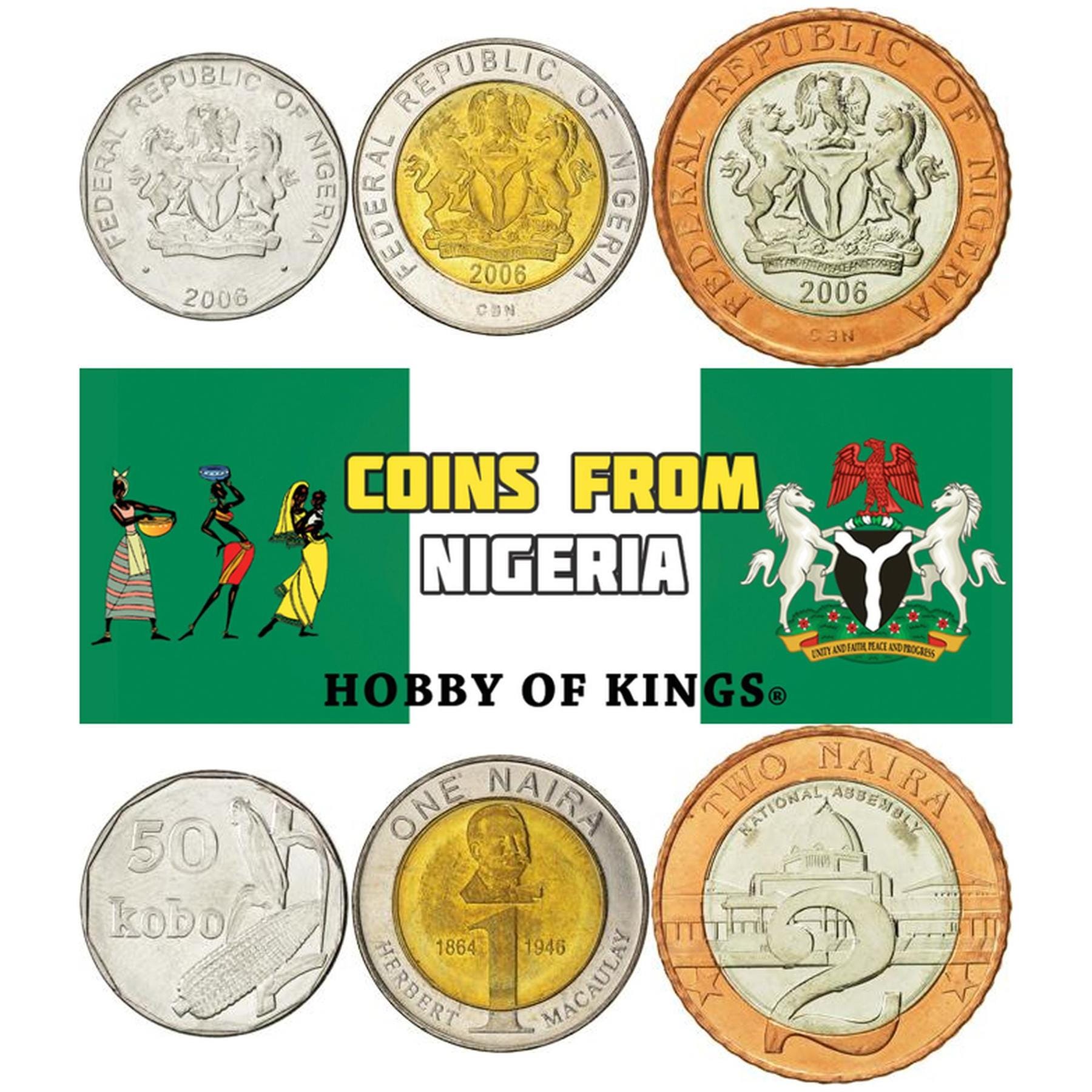 3 CIRCULATED COINS FROM THE FEDERAL REPUBLIC OF NIGERIA. Old collectible coins were picked from the numismatic period: Naira (2006). Each bag may have different years. You will receive a set of Nigerian coins: 50 kobo, 1, 2 nairas.