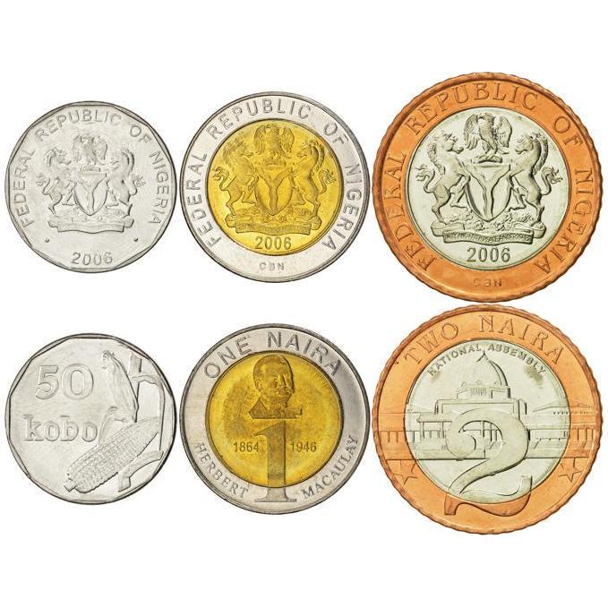 Nigerian Coin Set: 50 Kobo, 1 Naira, 2 Naira - West African Currency