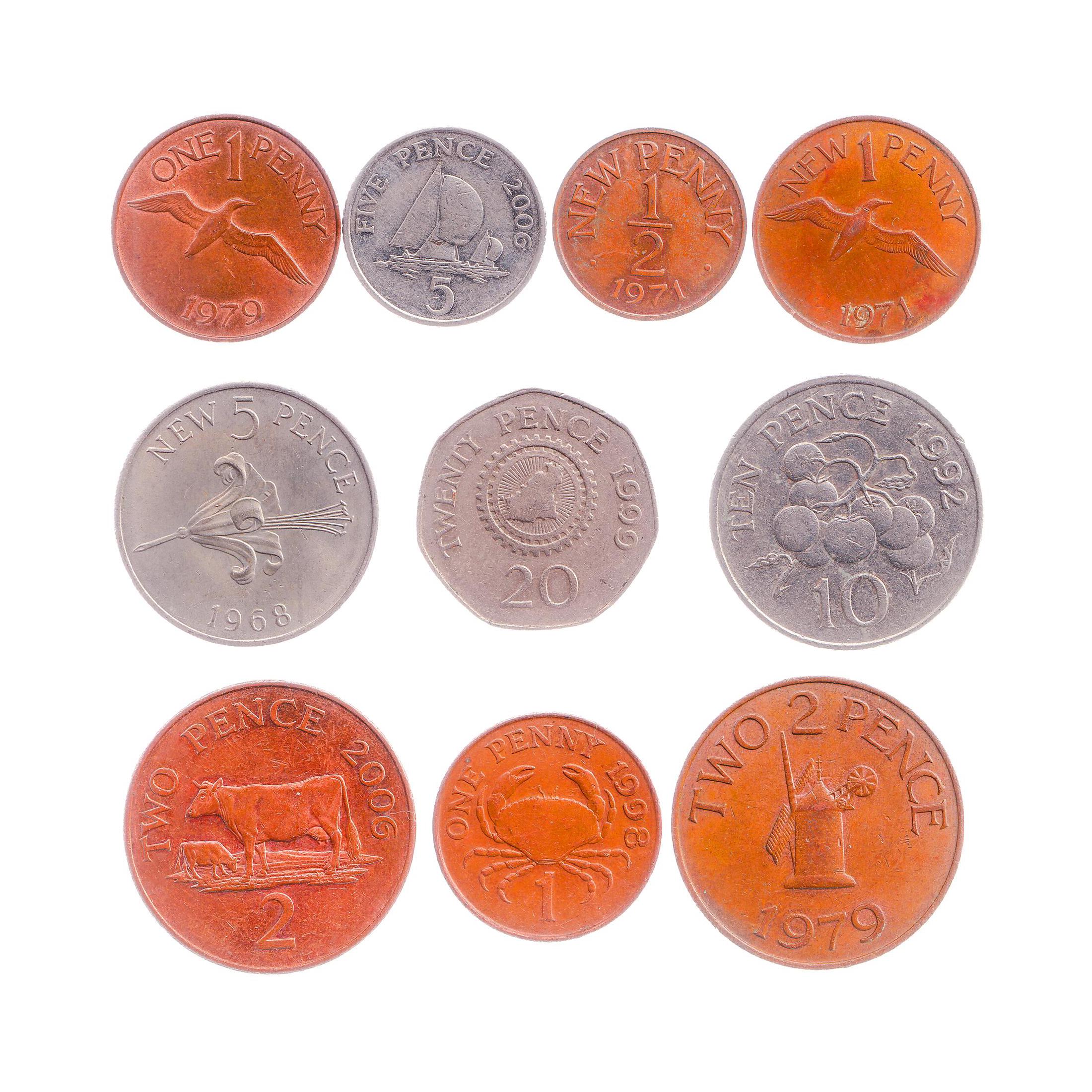 DIFFERENT COINS FROM THE BAILIWICK OF GUERNSEY. Collectible coins were picked randomly from the numismatic period: Pound (1998-2012). Each bag will have different combinations of coins, other denominations, various dates, and conditions. You will receive Guernsian coins from 1 penny to 20 pence. A product of 5 coins has up to 10 Pence, a product of 10 coins up to 20 Pence.
